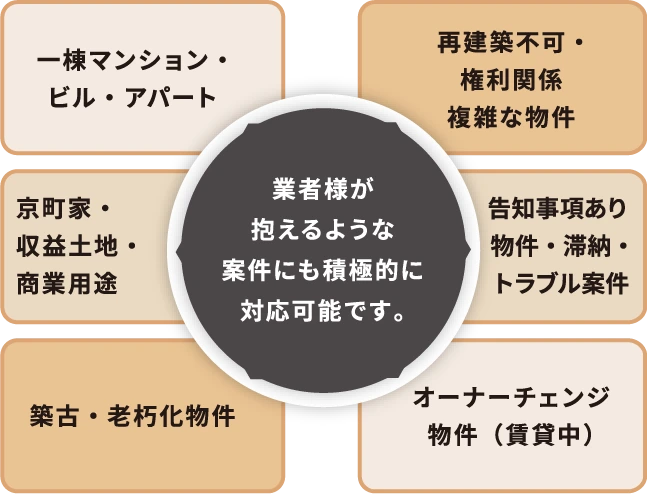 業者様が抱える以下のような案件にも積極的に対応可能です。